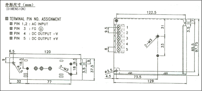 注:1、以上參數測試條件為:230VAC輸入,額定負載,25℃ 70% RH.濕度。
