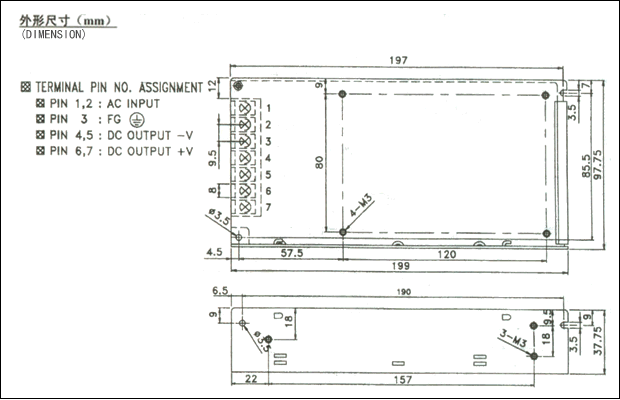 注:1、以上參數測試條件為:230VAC輸入,額定負載,25℃ 70% RH.濕度。 2、容差:包括設定容差,線路穩定度,負載穩定度(注5)。 3、紋波測試:20MHz 用A12"雙絞線,中斷用0.1uF&47uF電容器短路。 4、進線電壓穩定度測試:滿負載時進線最低電壓到最高電壓。 5、負載穩定度測試:負載從0%到100%。